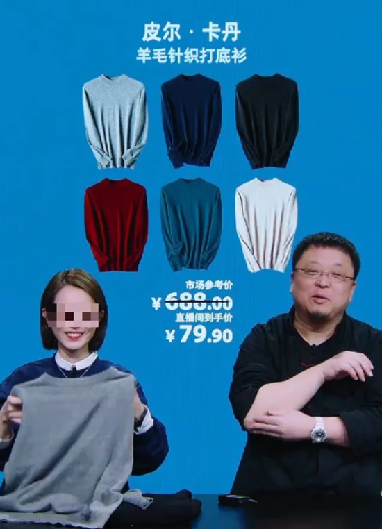 11月28日,罗永浩直播售卖“皮尔卡丹”牌羊毛衫,市场参考价688元,直播间售价79.9元。巨大的差价,吸引2万多名消费者下单。其后,多名消费者质疑罗永浩卖的羊毛衫没有羊毛。