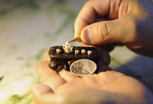 微雕,顾名思义,是一种以微小精细见长的雕刻技法。它甚至可以在米粒大小的象牙片、竹片上进行雕刻,其作品要用放大镜或显微镜方能观看到镂刻的内容,故被历代称之为“绝技”。