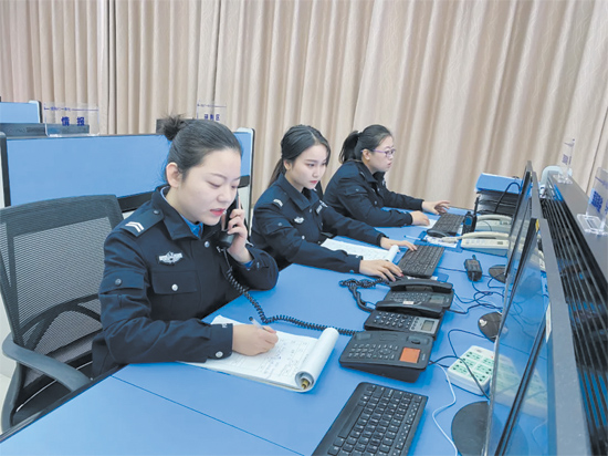 夏津县公安局指挥中心民警正在工作