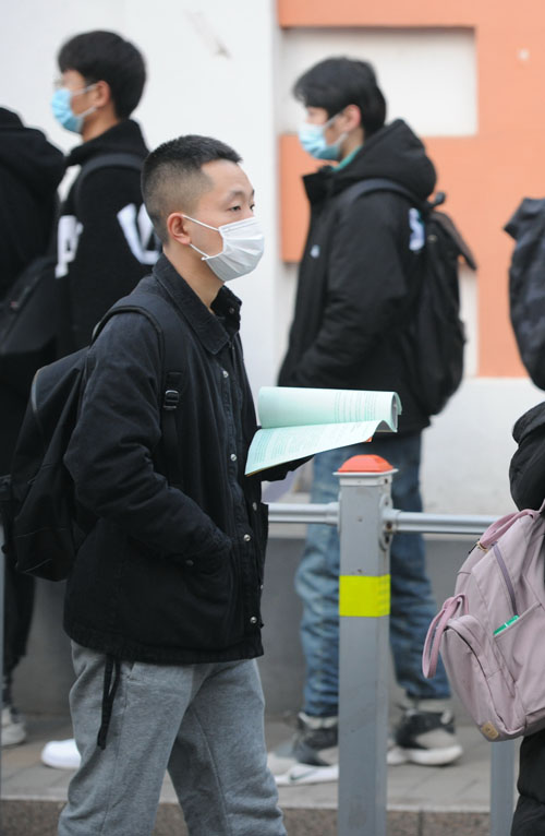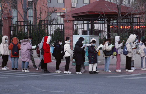 26日早晨7点30分左右,在青龙街小学考点,考生排队入场 专题摄影 记者 赵天羿