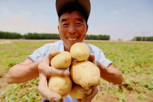 肥城市安驾庄镇66岁的孔庆印种植土豆15年,今年迎来大丰收