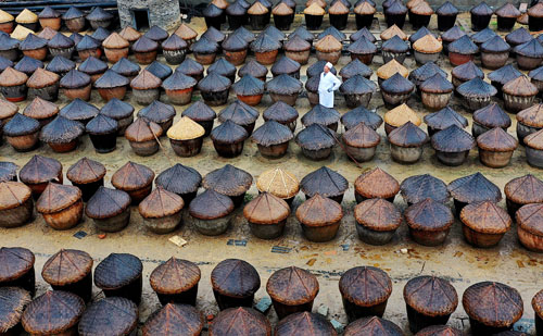 60岁的陈申平是新泰市果都镇人,他大半生都在从事腌菜工作,这些老缸带给了他很多回忆
