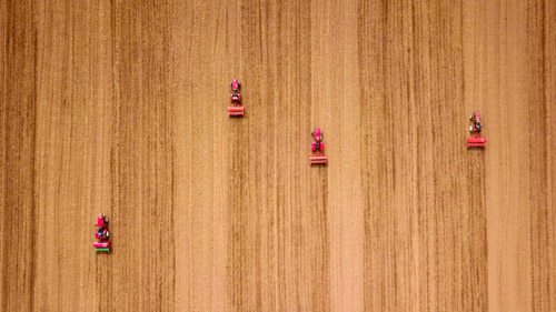 10月23日,无人机航拍济南长清区孝里街道黄河滩区,多辆播种机穿梭于田间