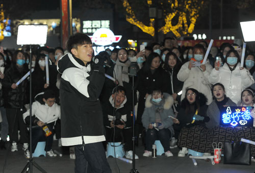 11月29日晚上,来自全国各地的粉丝围在恒隆广场北门入口一侧,还有从成都赶来听鲁怀德唱歌的粉丝。《飞鸟和蝉》《最浪漫的事》,一首首情歌将气氛拉到最高点,听众们也都沉醉其中,人群中不时地发出“好好听”的感叹。