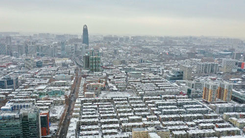29日,鸟瞰雪后省城 记者 赵天羿 实习生 吕扬 摄