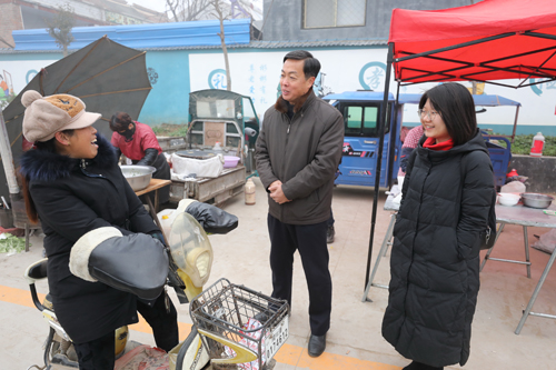 乔卫东(中)和卢钰每天都在村里走访,和村民聊家常,询问村民的生活情况。