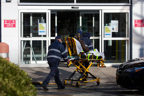 12月3日,在美国纽约,工作人员运送一名患者。新华社发