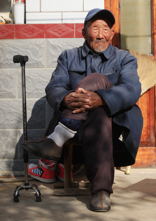 老人很喜欢晴天的时候坐在院子里晒太阳
