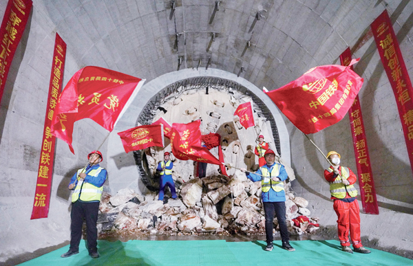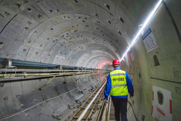 “地面交通繁忙,居民、商户密集,地下管线复杂,多次下穿老旧房屋、城市立交等高风险点。”据项目总工康永炜介绍,其中正面下穿的人民路立交桥,始建于1986年,是国内较早建设的城市立交。对此,项目部充分运用信息化手段,通过三维数值模拟计算分析,提前做好施工的风险研判和处置准备,加密下穿立交桥段的地质勘察。同时在穿越立交桥时特别加强监控测量,及时调控TBM掘进参数,做好同步吹填豆砾石、注浆加固,确保施工安全。通过“地上+地下”的全方位保障,TBM成功实现“零沉降”下穿立交桥。