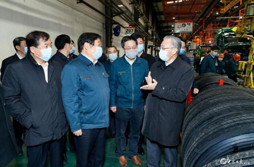 在中国重汽章丘工业园济南商用车公司,刘家义深入车间察看消毒消杀等防控措施落实情况,察看商用车整车生产线,叮嘱企业负责人要统筹做好疫情防控、安全生产和项目建设等工作。刘家义说,山东是装备制造大省,汽车产业必须高质量发展。当前,山东汽车产业面临规模小、层次低、布局散的问题,要瞄准全球汽车产业的前沿方向,以市场为平台,以资本为纽带,加大对上下游产业链整合力度,走集群化、集团化路子,打造自己的品牌,形成优良产业生态。