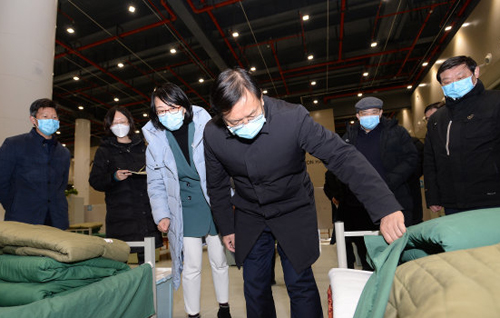 2月16日,王忠林接连到江岸、洪山、东湖新技术开发区,调研督导“方舱医院”建设。在武汉科技会展中心建设地,他嘱咐工作人员:“住的暖不暖和,舒不舒服,你们一定要自己试,自己感觉。”