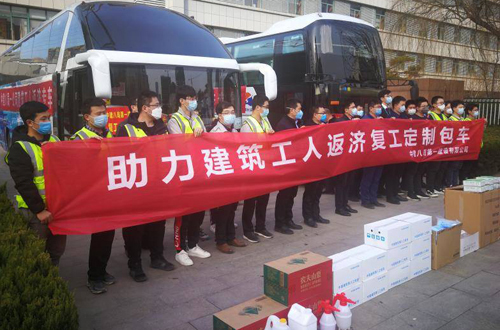 济南市昨天首批集中发出的6辆“点对点”专车,将前往外省接回近200名工人返济投入生产。山东商报·速豹新闻记者史尚静通讯员关学军摄
