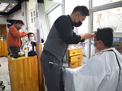 韩铭告诉记者,“现在剪发主要以电话预约为主,顾客没有预约的话,店内最多只能留三个人,其余理发者得到外面等或错时再来。”他说,因为自己经营的理发店空间有限,限制客流量是为了避免人员聚集,从而更好地防控疫情。