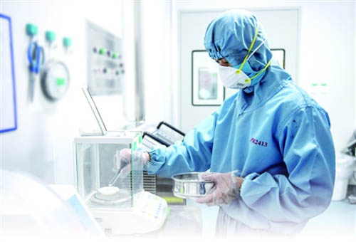 2月3日,工作人员在位于海口的一家药企公司制剂车间内抽查抗病毒药物的质量。 新华社发