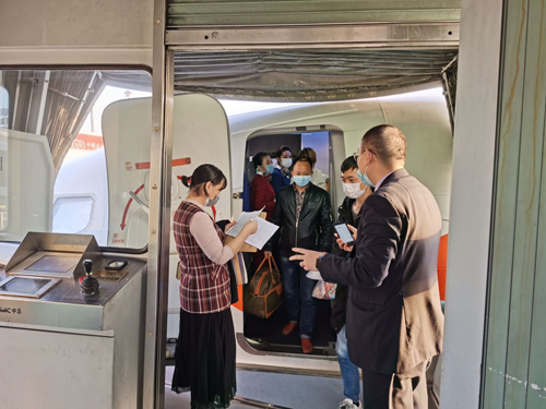 26日17时,山东航空SC4944航班降落在青岛流亭机场,143名自贵州省安顺市返程的务工人员顺利抵达青岛,他们将分别前往海信集团、国恩科技等多家企业的工作岗位。这是新冠肺炎疫情发生后山东省首个“复工包机”。山东航空供图