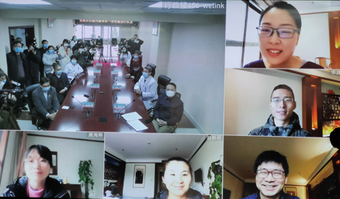 山东第一医科大学第一附属医院五位援助湖北医护人员正在与院方进行视频连线。