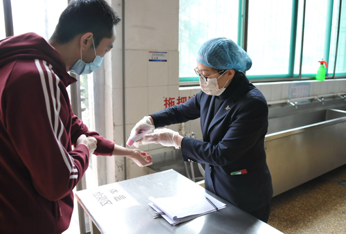 燕山中学每个年级的在校生都在1000人以上,防控压力不小。记者了解到,学校已经安排一旦返校,环境消毒人员必须每天于6:00之前完成对校门口内外通道进行消毒,6:30之前到岗,做好各项准备工作。