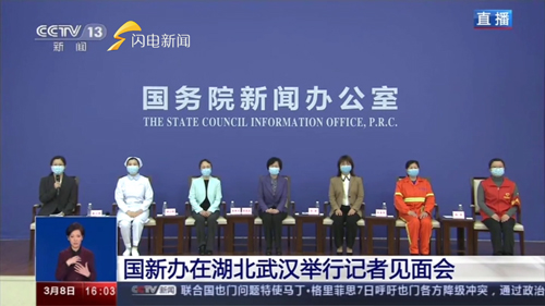 3月8日,国务院新闻办在武汉举行的第三场记者见面会,迎来了6位特别的嘉宾——她们是医生、护士、记者、环卫工人、志愿者。