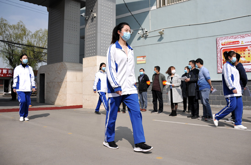 据悉,师生入校前,要在家中自主测温,并填写体温登记表。到达学校后,所有人按照地面引导线,间隔2米排队,先是穿过红外线测温仪,然后在消毒垫上对鞋底进行消毒,随后,继续排队进入教学楼前,向老师出示居家体温测量登记表,并接受二次测温。老师会对所有学生体温进行登记,学生进教室前,班主任会在门口对其进行第三次体温测量。“我们要求,凡是在校期间,无论是入校晨检,还是洗手、如厕、取餐等,学生都要保持2米间隔,并整齐排队。”天桥区泺口实验学校(中学部)副校长甘福琼说。