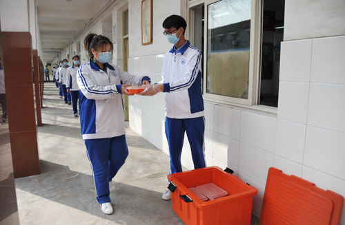 每个先开学的初三班级拆分AB班,保证学生课堂上的间距。