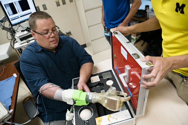 “让义肢真正成为佩戴者身体的一部分。”是研究组的终极目标。塞德纳教授与密歇根大学工程学院生物医学工程副教授辛迪·切斯特(Cindy Chestek)共同领导了这项研究。该研究由美国国防部高级研究计划局(DARPA)和美国国家卫生研究院(National Institutes of Health)联合资助。相关研究报告《再生的外周神经接口可以实时控制截肢者的义肢手臂》,刊载在3月4日出版的科际整合性的医学期刊《科学转化医学》(Science Translational Medicine)上。论文中详细地记录了四名研究参与者使用智能仿生义肢“卢克手臂”(Luke arm)的情况。