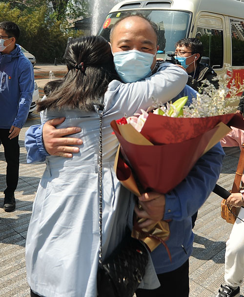 3月21日,576名山东医疗队队员,在交上黄冈答卷后踏上归途。按照要求,32名疾控人员继续留守黄冈,协助当地开展防控工作,防止疫情反弹。