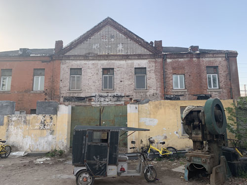 在现场记者看到,旧时喧嚣的北关车站现如今仅仅留存下一栋二层的红砖小楼。在小楼的南面,大门紧闭,透过缝隙能够依稀看见大门后面有着一片小院。靠近大门西面的围墙已经出现破损情况,东面围墙有着一扇完整的小窗。