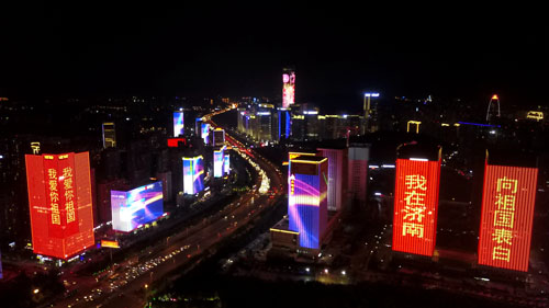 济南经十东路奥体中心至汉峪金谷的高楼建筑群夜景。(资料片)山东商报·速豹新闻记者赵天羿摄