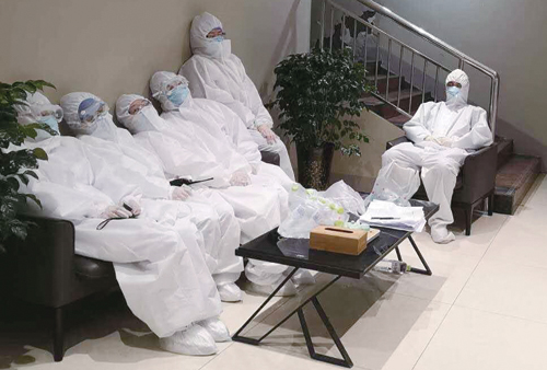 顾不上休息,张田胤和同事们迅速穿好防护服,进入工作状态。登记信息、安排入住、告知注意事项、测量体温、送生活必需品,与消毒人员进行沟通……凌晨的办公室里一片忙碌,待到一切安排就绪,130位入境人员全部入住酒店,已是凌晨四点。