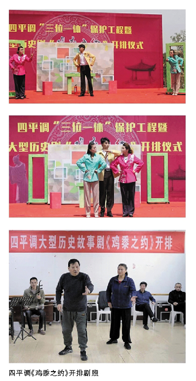 郭学东介绍,对四平调这一剧种的剧目打造自去年5月开始启动。“以前其他剧种的‘三位一体’保护几乎都是对原有剧目的经典恢复,四平调这个项目完全是新创的历史剧目,项目组根据非遗‘鸡黍之约’的故事,结合当地打造‘诚信之乡’的背景,在尊重历史的情况下打造了一个大型剧目《鸡黍之约》。”