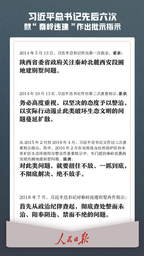 整治前,秦岭北麓分布着大量别墅小区,不少山体遭人为破坏,生活污水被随意排放,好山好水被据为私有,生态环境受严重破坏。针对这一问题,近年来,习近平总书记先后六次作出重要批示指示。