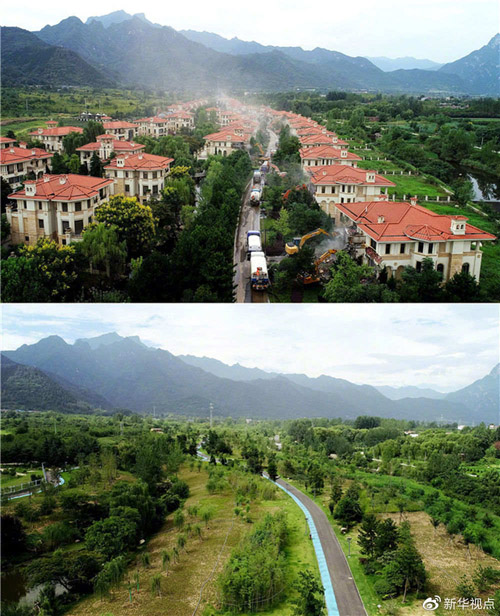 十几年前大肆违建别墅的乱象被严厉整治,在不同时期拍摄的对比照片中,莽莽秦岭的旧貌与新颜一目了然。然而曾经的秦岭之觞,让人触目难忘。