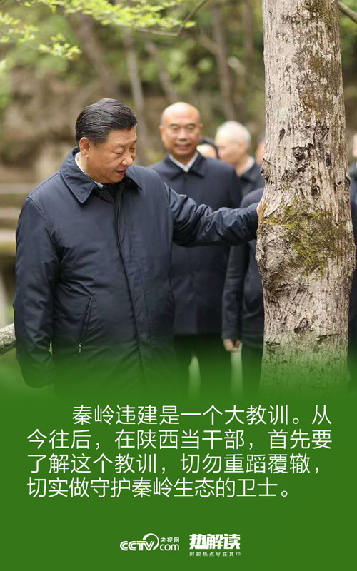 4月20日下午,正在陕西考察的习近平强调,秦岭违建是一个大教训。从今往后,在陕西当干部,首先要了解这个教训,切勿重蹈覆辙,切实做守护秦岭生态的卫士。秦岭之行,言出意明。