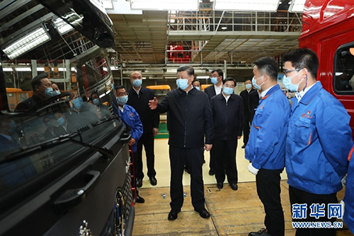 在西安考察时,习近平来到汽车制造企业车间一线,登上卡车驾驶室询问产品性能和操作流程,对企业克服疫情影响创产销历史新高表示赞赏。