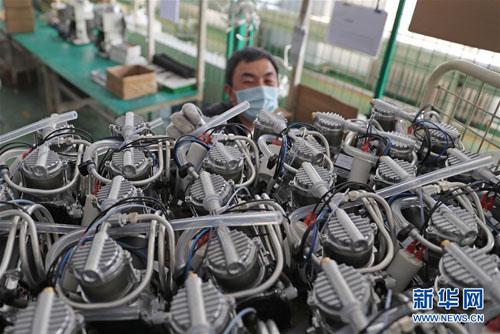 2月5日,沈阳新松医疗科技股份有限公司员工在车间生产制氧机。新华社记者 杨青 摄
