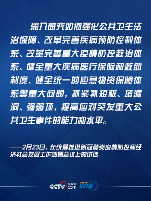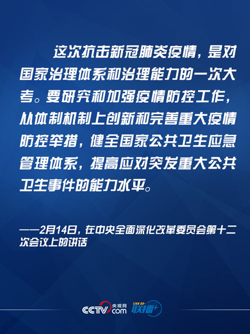 小智治事,大智治制。这次新冠肺炎疫情防控,对我国治理体系和治理能力是一次大考。战“疫”以来,习近平既立足当前,又谋划长远,部署疫情防控同时,多次在发表重要讲话和考察调研时对健全各方面制度,完善治理体系进行部署。央视网《联播+》栏目特进行梳理,与您一起学习。