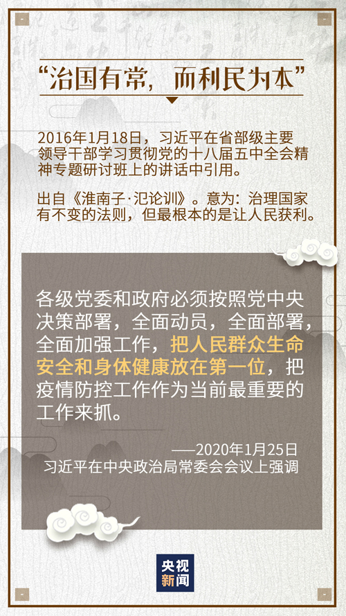 从“治国有常,而利民为本”到“政之所兴在顺民心”,从“利民之事,丝发必兴”到“一枝一叶总关情”,这些中华传统文化典故都反映了“人民至上”的思想。