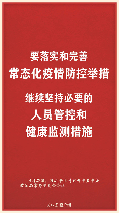 各地要落实和完善常态化疫情防控举措,继续坚持必要的人员管控和健康监测措施,指导企事业单位和各类公共场所落实防控要求,引导群众做好必要的个人防护。