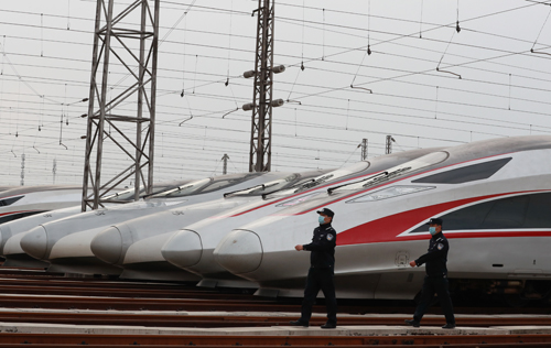 4月6日,武汉动车段高铁动车组整装待发。新华社发