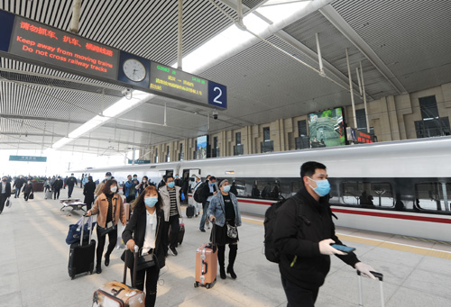 “回来了!终于回来了!除了高兴还能说啥?”列车停稳后,在有序下车的乘客中,一对年迈的老夫妇吸引了记者的注意。其中,老先生告诉记者,儿子在武汉成家立业,由于儿媳的父母身体不好,自己与老伴于去年腊月十九登上春运的列车,去武汉看小孙子。