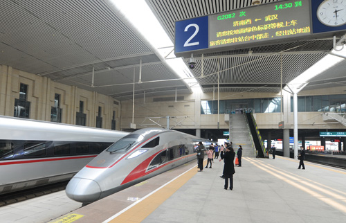 昨天下午,从武汉始发的G2082次复兴号列车停靠济南西站 本专题摄影 记者 赵天羿