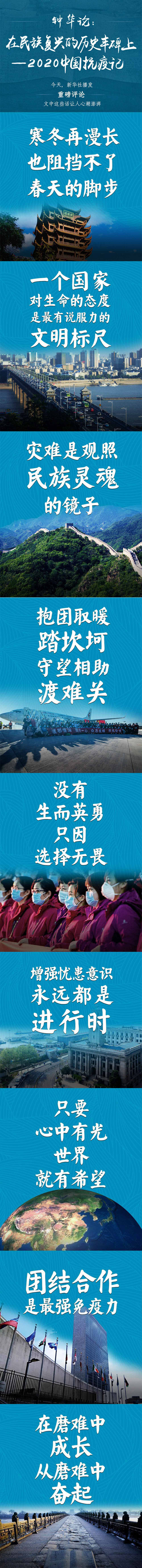 中国精神,在抗疫中淬炼,在磨砺中升华。这笔弥足珍贵的精神财富,永远是中华民族披荆斩棘、奋勇向前的力量之源。