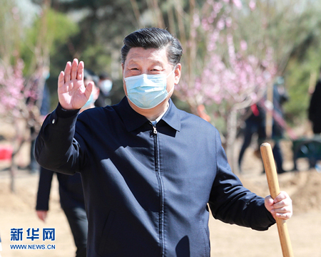 参加义务植树时,习近平说:“在全国疫情防控形势持续向好、复工复产不断推进的时刻,我们一起参加义务植树,既是以实际行动促进经济社会发展和生产生活秩序加快恢复,又是倡导尊重自然、爱护自然的生态文明理念,促进人与自然和谐共生。”