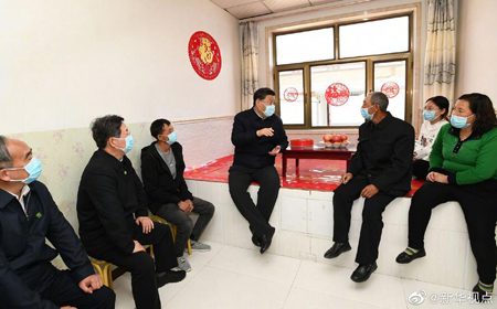 11日,在山西考察的习近平总书记来到大同市云州区西坪镇坊城新村,同村民坐在炕沿上拉家常。