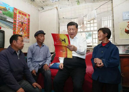 在山西岢岚县赵家洼村特困户刘福有家,习近平坐在炕沿上,招呼老两口在自己身旁坐下,对他们说,“来,咱们拉拉话。”从种地、旱情到打工,习近平都细致询问,关切一家人最重要的生计。