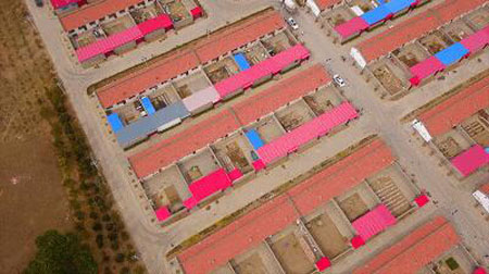 △从空中俯瞰,搬迁居民们在坊城新村住的是独门独院的新房。(总台央视记者康晓宇拍摄)