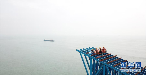 这是4月25日拍摄的深中通道伶仃洋大桥施工段(无人机照片)。新华社记者卢烨摄