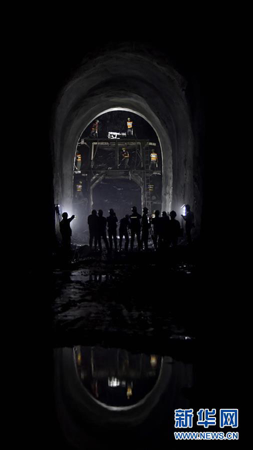 大理至瑞丽铁路重点控制性工程大柱山隧道贯通前的最后一次开挖作业(4月27日摄)。新华社发