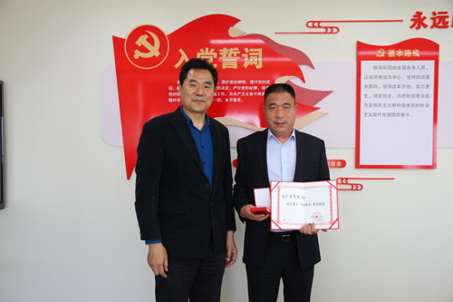 4月28日,山东省财贸金融工会副主席薛胜利代表山东省总工会为平安产险山东分公司党委书记、总经理李军凯颁发“2020 年山东省五一劳动奖章”。