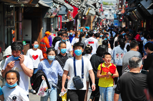 此外,记者在芙蓉街、宽厚里小吃街看到,尽管受疫情影响各个进出口未完全放开,但在允许进入的入口却排满了等待测温进入的市民。更有市民看到此番景象直呼:“热闹的济南回来了!”